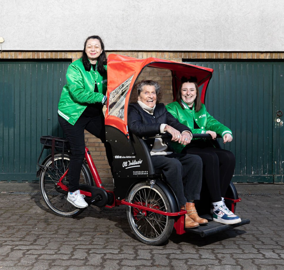 Als Pedalheld*innen stehen nicht nur die Ehrenamtlichen des OLL INKLUSIV-Teams bereit. Die gemeinnützige Initiative konnte mit der Hamburger Fahrradgarderobe und Hamburg Steps zudem tolle Partner gewinnen, der von den Fahrer*innen bis zur Verkehrspolitik spezialisiert ist auf nachhaltiges Zweiradwesen. „Wir haben mit unserem Rikscha-Service das Fahrrad nicht neu erfunden‟, sagt Mitra Kassai. „Uns geht es schlichtweg darum, ein Angebot zu schaffen, das vor allem Menschen in Pflegeeinrichtungen und Seniorenheimen eine positive Abwechslung in ihren Alltag bringt‟